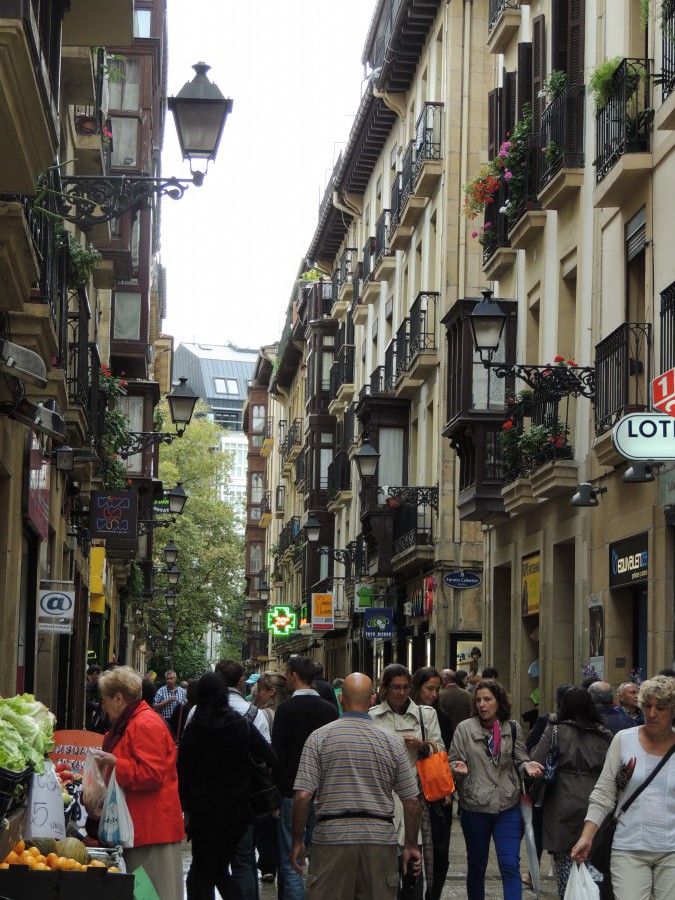 One of my favorite things about Europe is that visiting another country can often be easier and quicker than driving from San Francisco to Los Angeles. While we were visiting Jules’ parents in the Southwest of France, we took a four-hour car trip over the border to San Sebastián – the first time for both of us. I got really excited when we hit Pays Basque (the French Basque side); you’ll know when you have reached it, since the architecture changes to white facades and colored wood, and the fonts on the signs are very distinctly…Basque. The Basque region includes parts of both France and Northern Spain, and the Spain side is called Euskadi, or Donostia. Don’t be fooled by geography – the Basque culture is very proud, and they generally don’t consider themselves to be French or Spanish – they are Basque.