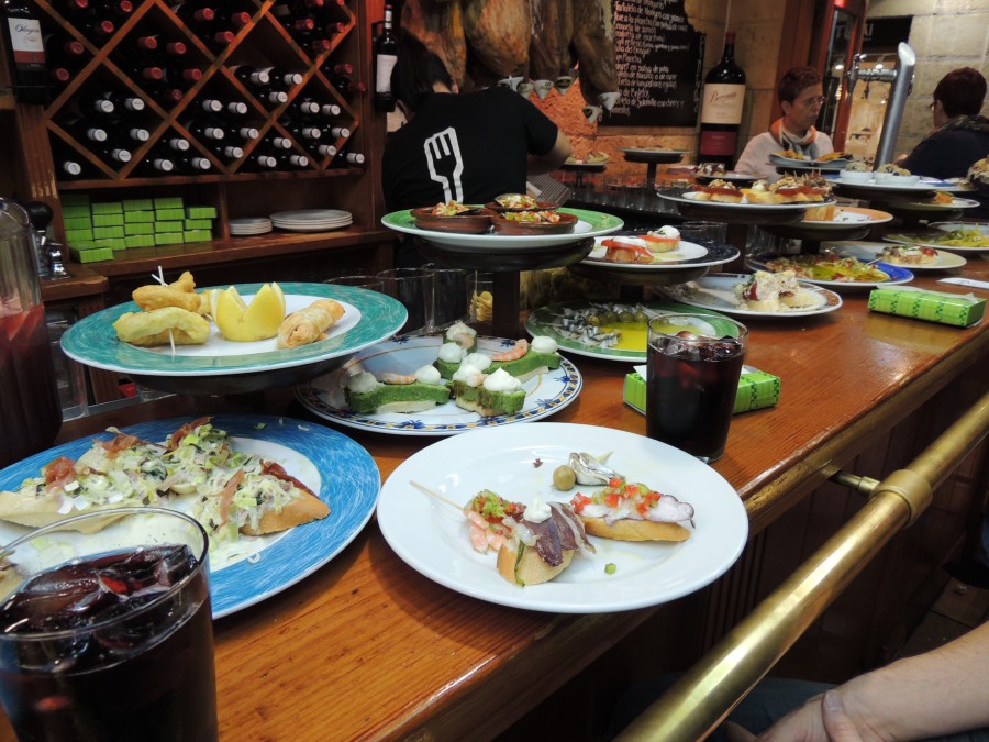 The next day, we wanted to make one more stop into the Parte Vieja, just to see it by day. It was just as crowded during the day as it was at night, the pintxos bars were open fairly early (I am super bummed that I only found out about the churros & chocolate bar a day later and we didn’t have time to go), and there was a bit of shopping available. We ended up buying a few books and having one last jaunt at Beti Jai, probably one of the most modern and fancy pintxos bars I’ve seen.